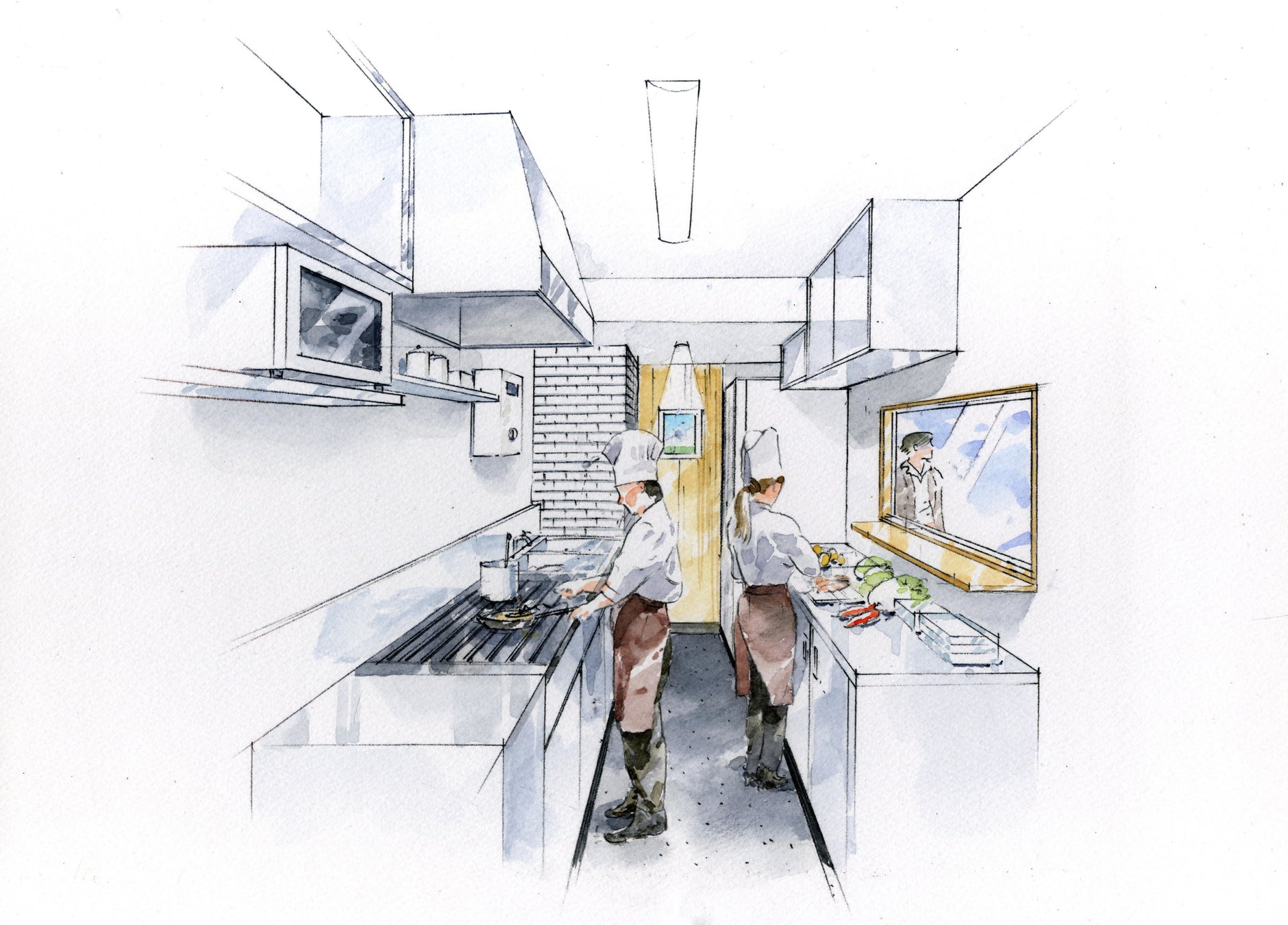 またキッチンスペース内の窓を増設する等、閉塞感を感じずに快適に作業をしていただけるようキッチンスペースを再設計しています。