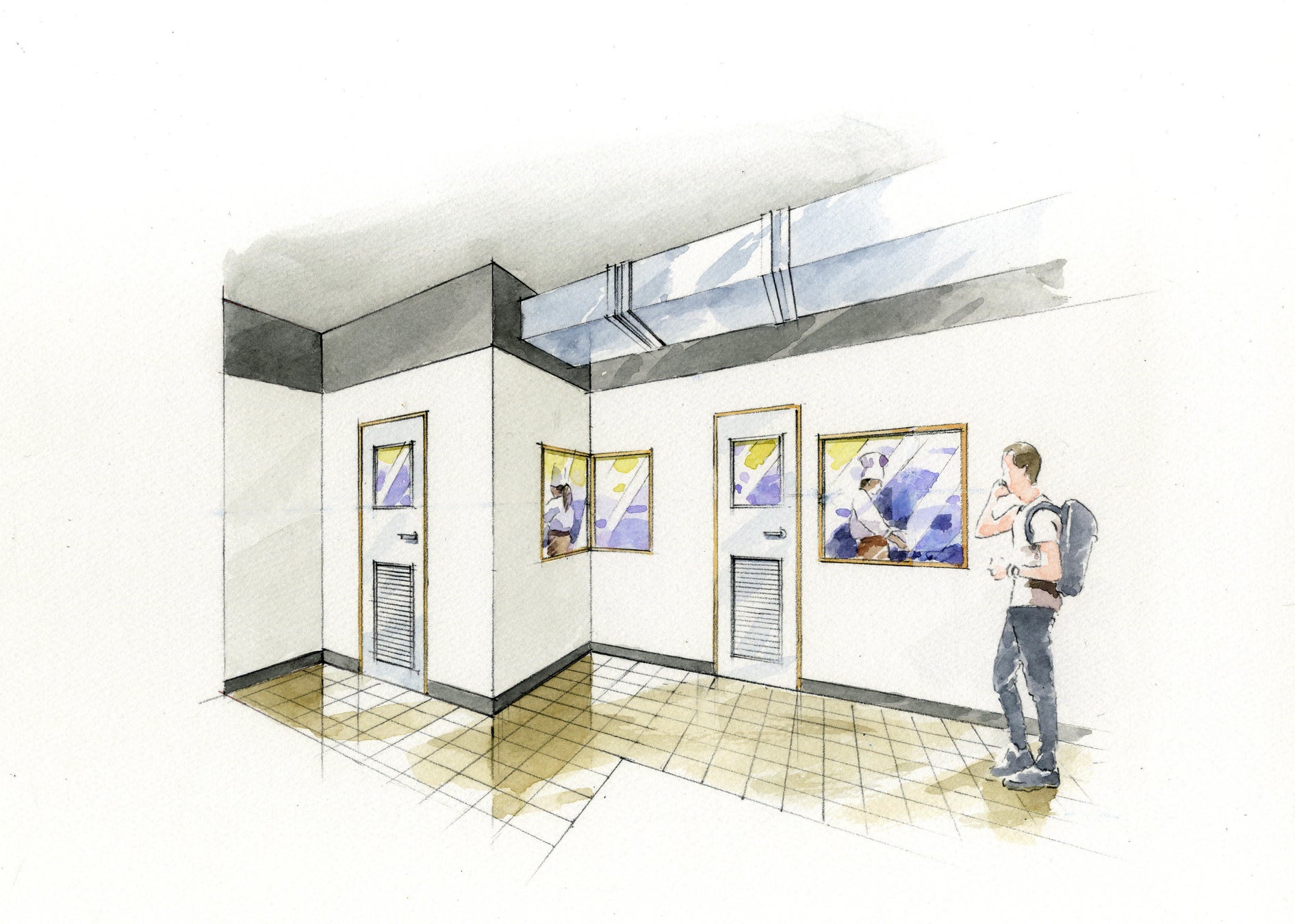 当キッチンの強みは、渋谷駅、代官山駅が徒歩圏内に収まる好立地にあり、近隣の住民、通勤者、学生の方々から一定のテイクアウトニーズが見込まれます。この度のリニューアルではこのようなテイクアウトニーズに応え、入居店様の売上に貢献するために、施設共有部にテイクアウト販売用の販促看板および注文カウンターを設置します。