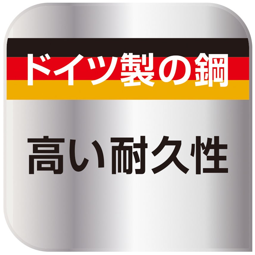 切れ味の良さと優れた耐久性を生み出すティファール独自の技術「アイスフォーステクノロジー」を採用。鋼を高温で熱処理した後、マイナス120℃に急冷することで鋼の硬度が増し、鋭い切れ味が持続します。また、鋼の耐久性が強化され、錆びにくくなります。