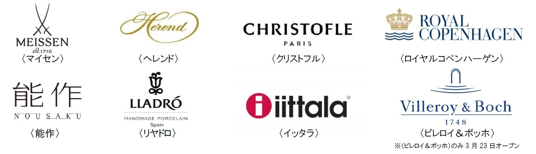 特選洋食器を中心とする人気8ブランドをショップ化し、幅広いラインアップで展開します。