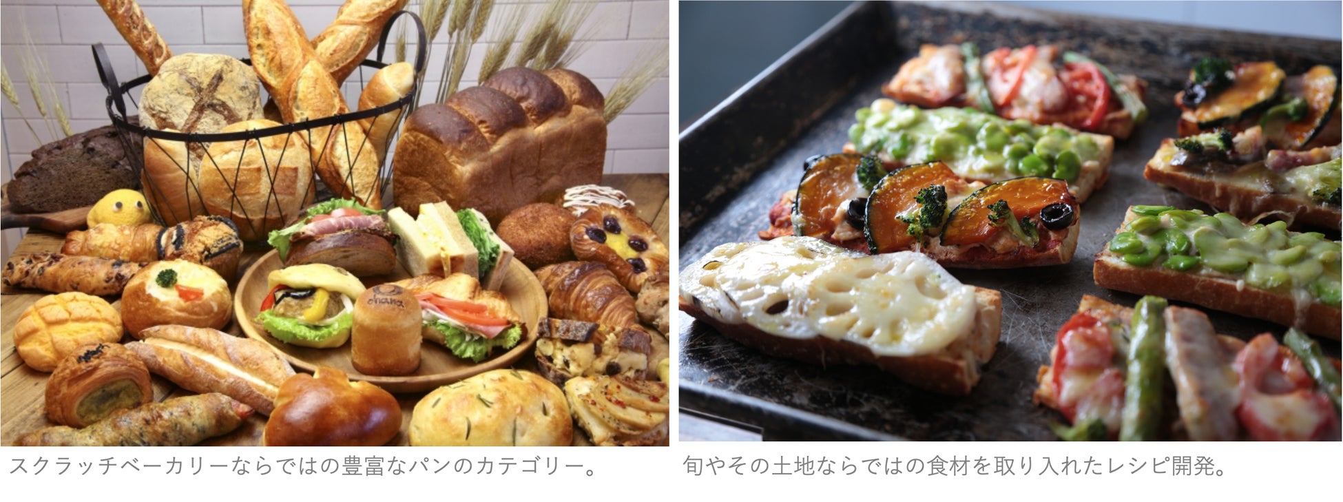 また、ohanaのスクラッチベーカリーの強みを生かして、地元食材・旬の食材を取り入れた商品開発を行い、地産地消を実践します。道の駅などでの展開も強化、パンを通して地域の魅力の発信し、地域コミュニティの中心となるような店舗開発を推進。地域食材の生産と消費、食文化の伝承や地域経済の活性化に加え、食材輸送にかかるエネルギー削減などを通じて、外食産業におけるサステナビリティを牽引してまいります。