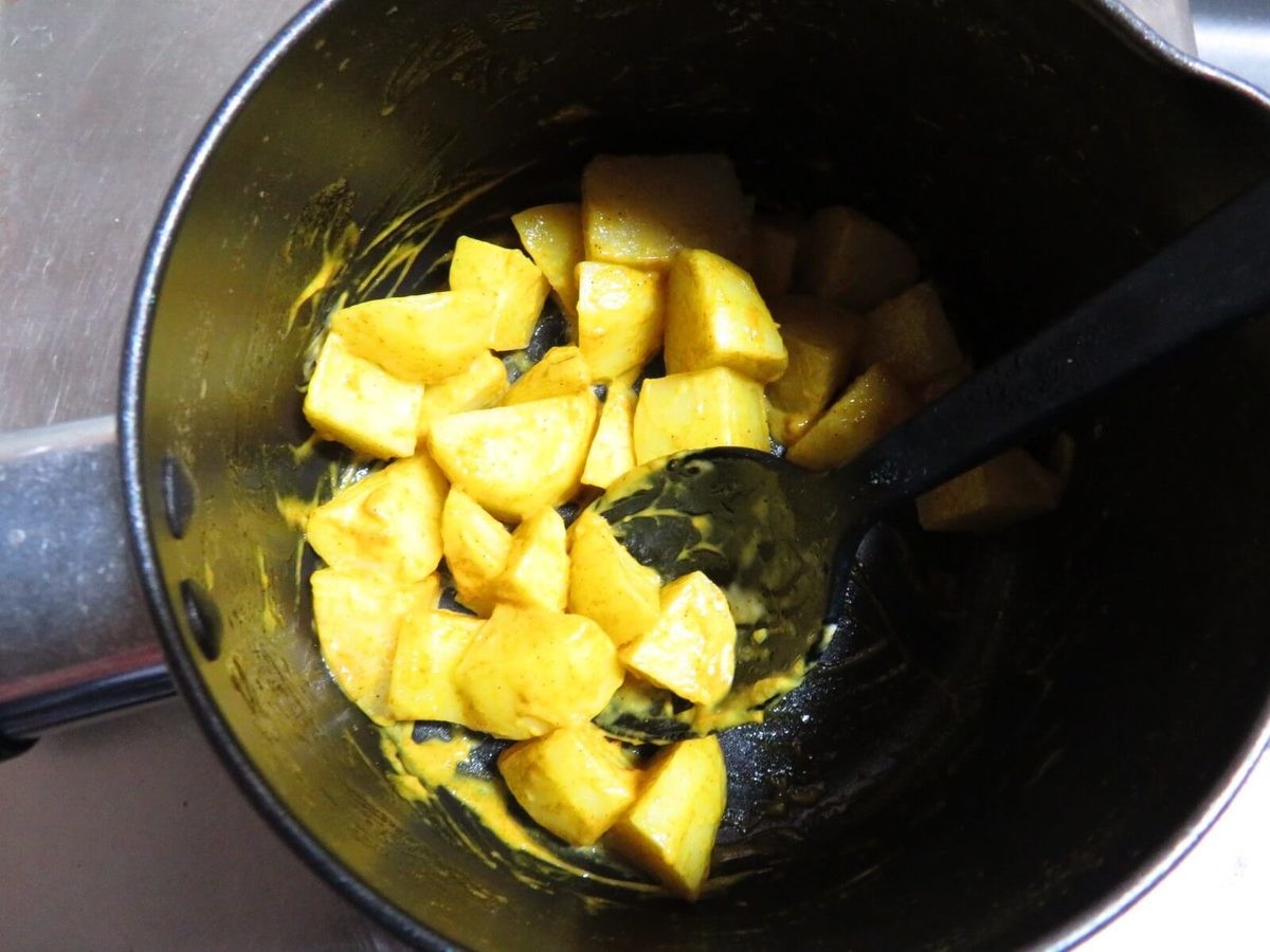 そのまま水を足し、蓋をして煮たら、煮物やスープの完成。作業に無駄がありません。
