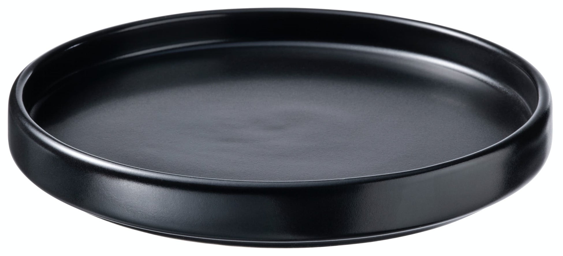 ブラックの陶磁器製の小さなプレートは、装飾的かつ実用的。サービングディッシュやコースター、トレイとして使えます。プレートを別売りのKRÖSAMOS/クローサモス サービングボウルの上に置くとふたになります。中身を長くフレッシュに保ちます。