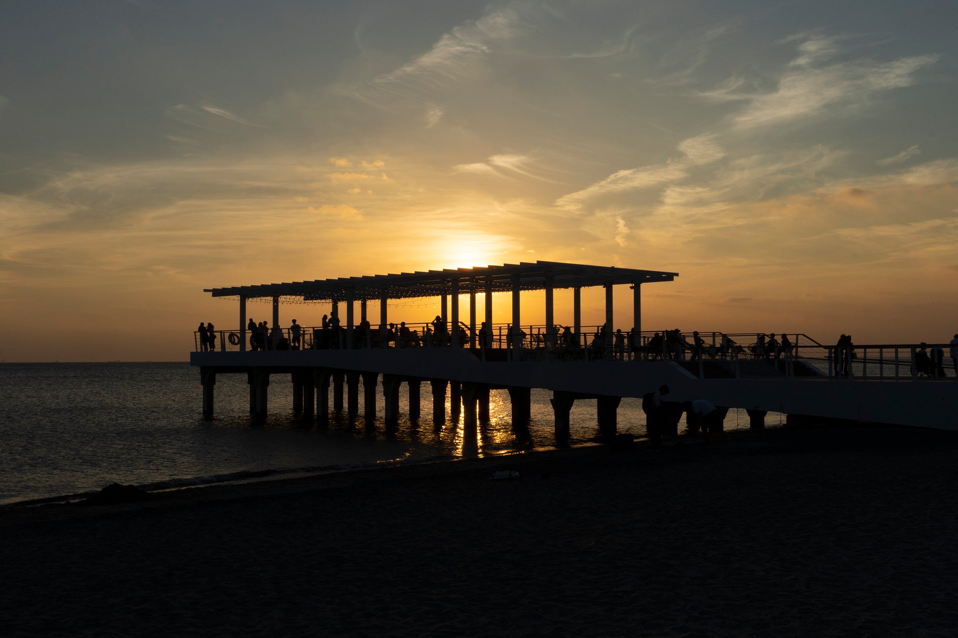 秋にはサンセットと富士山が重なるダイナミックな景色を鑑賞できます。今年オープンした海へ延びるウッドデッキの突端には「THE SUNSET Pier & Café」があり、温かいドリンクやカクテルなどを片手に優雅に鑑賞いただくことが可能になりました。