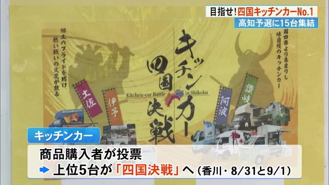 商品を買った人がイチオシのキッチンカーに投票。上位5台が、2024年8月31日と9月1日に香川県高松市で開催される“四国決戦”に進出します。