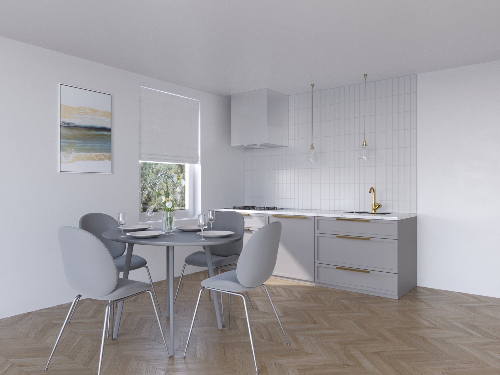 框扉とゴールドのアクセサリーを組み合わせ、上品なデザインを表現しました。細い框のラインとゴールドのアクセサリーが、繊細な陰影と共に美しさを引き立てます。